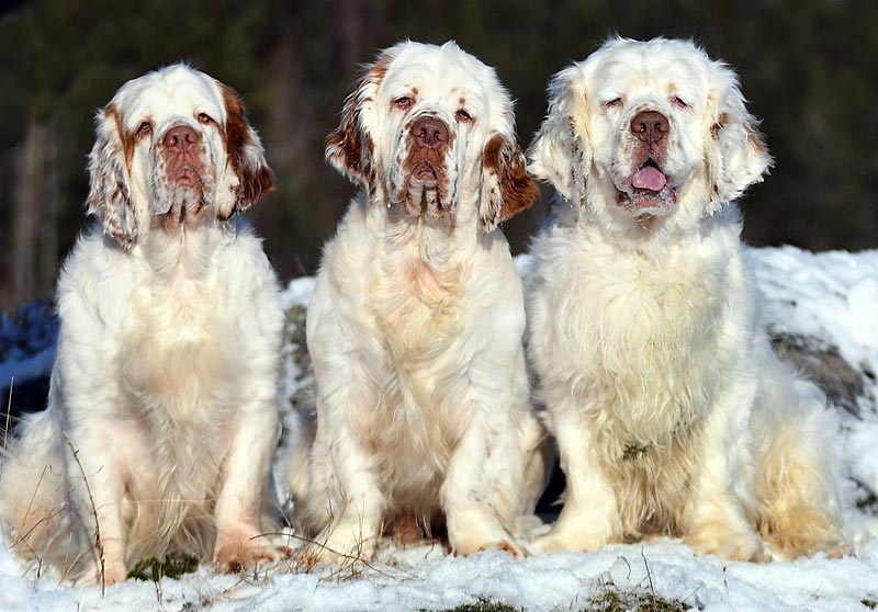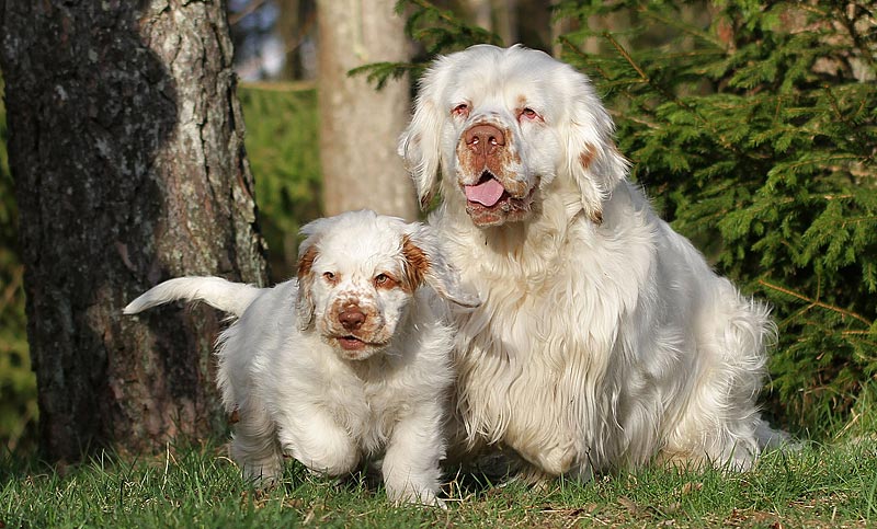 Man er usikker på rasens tidlige opphav og vet ikke sikkert om den har utviklet seg kun i England, eller om det er blandet inn hunder av spanieltype fra Frankrike. Rasen har fått sitt navn etter The Duke of Newcastles gods, Clumber Park. På malerier fra andre halvdelen av 1700-tallet man kan tydelig se rasens karakteristiske utseende. Rasen ble offisielt anerkjent rundt 1900 og fikk da sin første standard i den engelske kennelklubben.